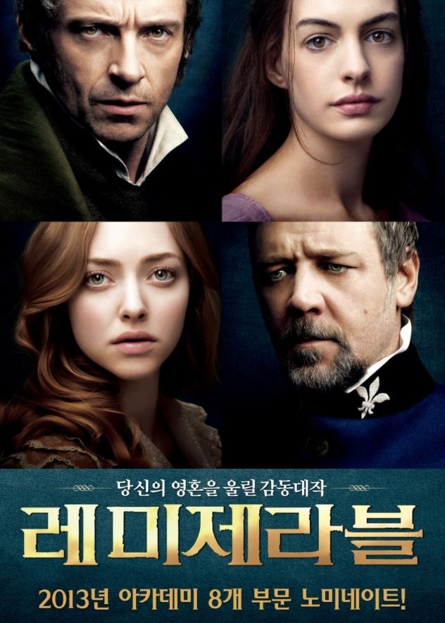 영화 레미제라블(Les Miserables)은 한국기준으로 2012년 12월 19일에 개봉했습니다. 이 작품은 뮤지컬을 영화한 작품이며, 감독은 <킹스 스피치>로 알려진 톰 후퍼가 맡았습니다. 출연배우로는 장 발장역에 휴 잭맨, 자베르역에 러셀 크로우, 팡틴역에 앤 해서웨이, 코제트역에 아만다 사이프리드, 마리우드 퐁메르시역에 에디 레드메인, 에포닌역에 사만다 바크스 등 유명배우들이 대거 출연합니다.